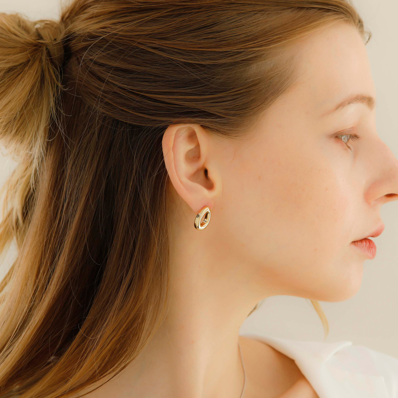 たまご型のモチーフを収まりやすいサイズに落とし込みました。コンサバにつけられるベーシックなデザインです。