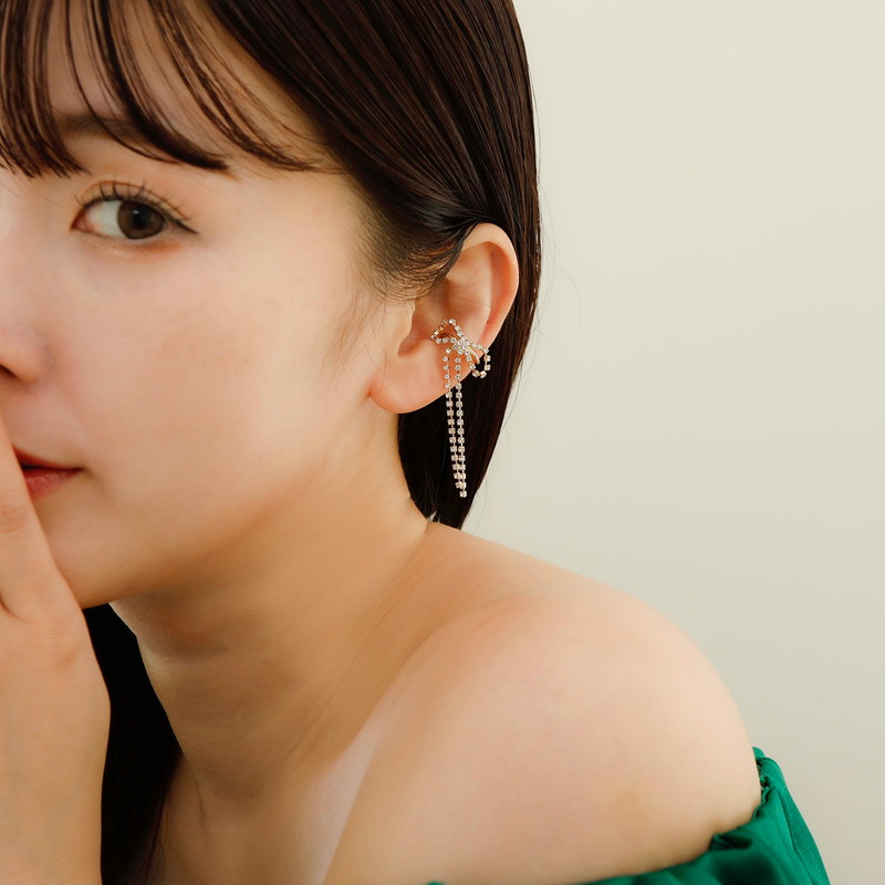 JewCas JCQリボンガラスストーンイヤカフ [JCQ0204]