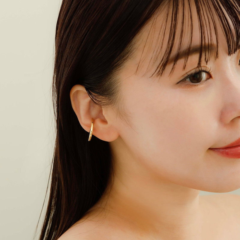太めのラインが耳の横から存在を強めてくれる、メタルイヤカフ。