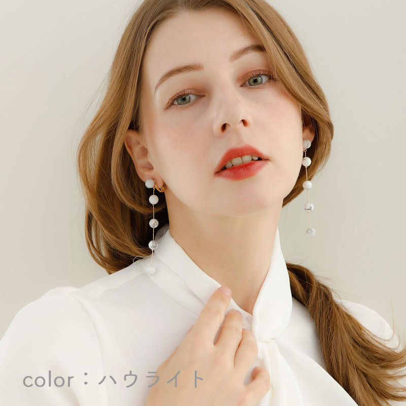 天然石のイヤリングは、自然の色味や質感がそのまま魅力になっています。