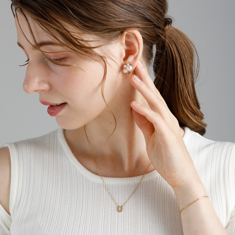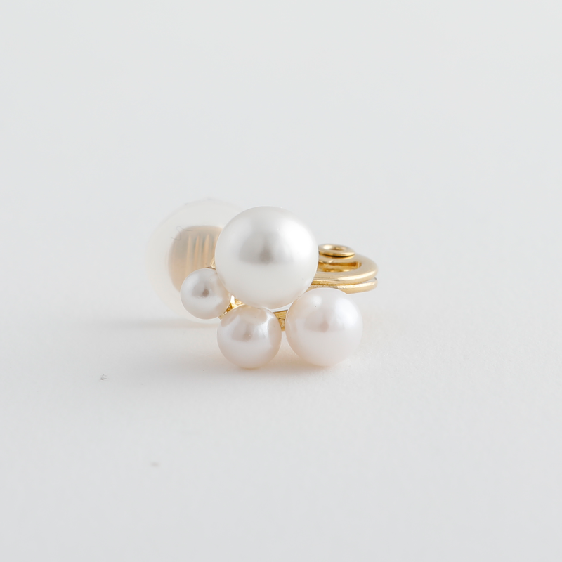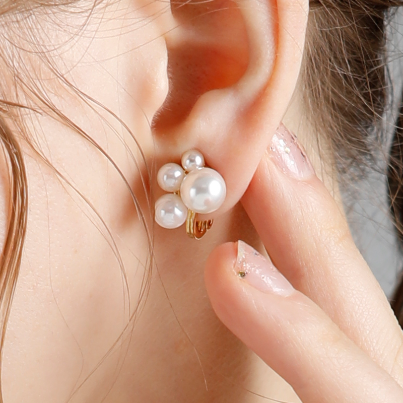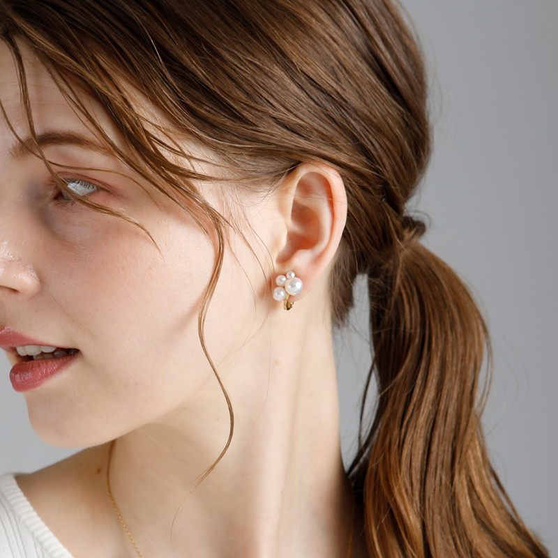耳の厚みに合わせて微調整ができる構造に加え、ふわっと優しいシリコンカバーのクッション付き金具を採用。長時間つけても締めつけ感が少なく、「イヤリング=我慢」という常識を覆すつけ心地を叶えました。