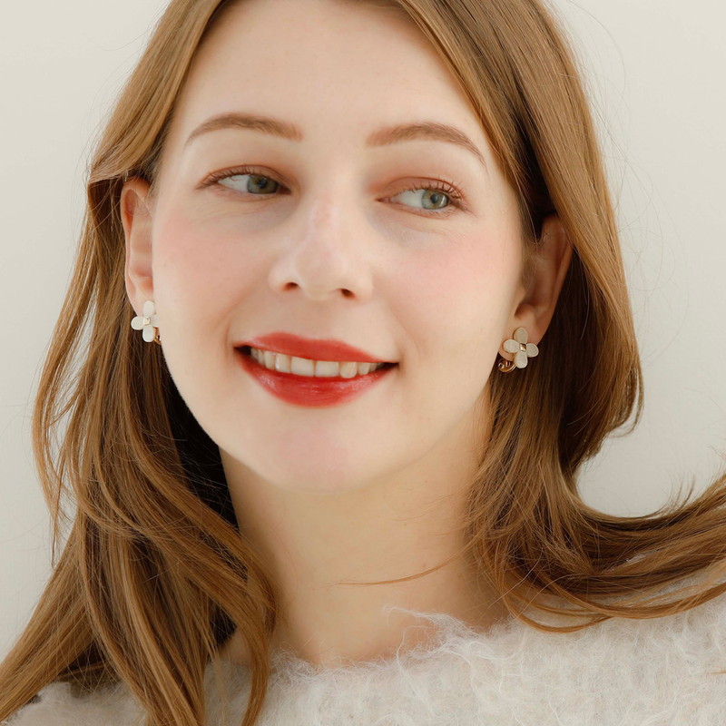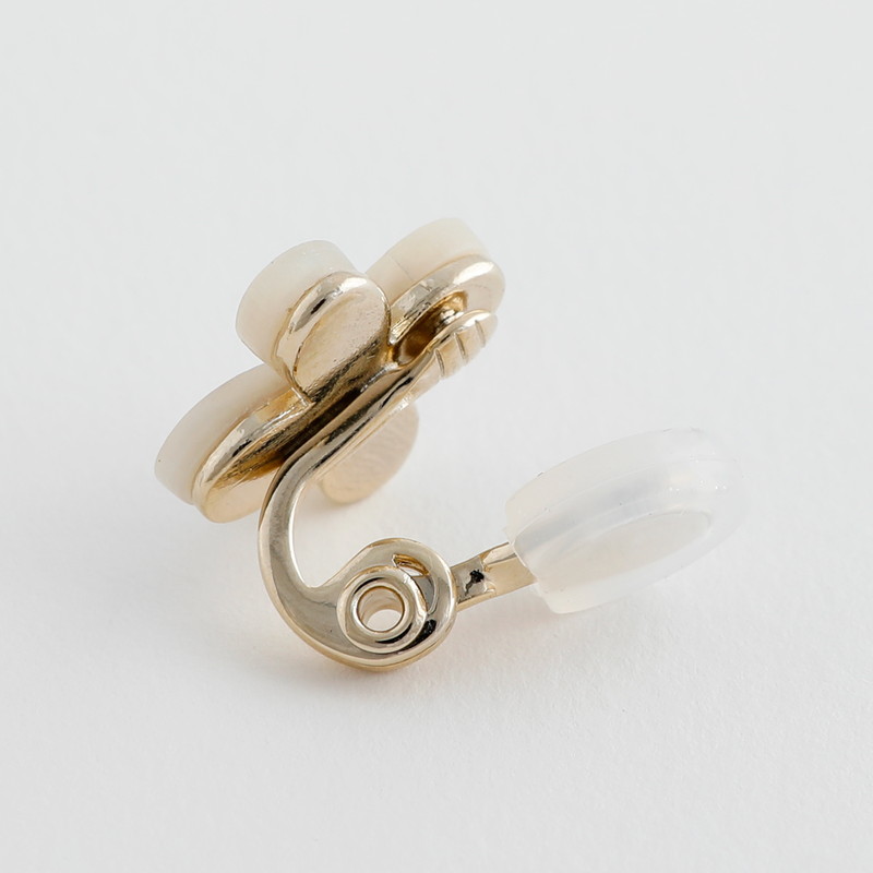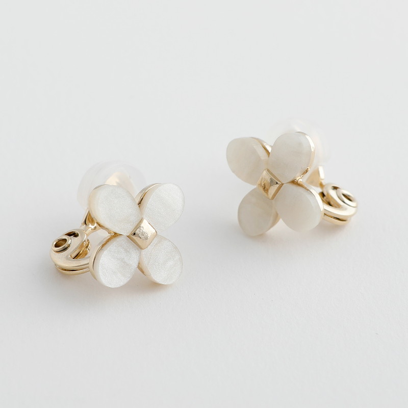 小さな花がそっと咲いたような、やさしい印象の「フローラ」イヤリング。