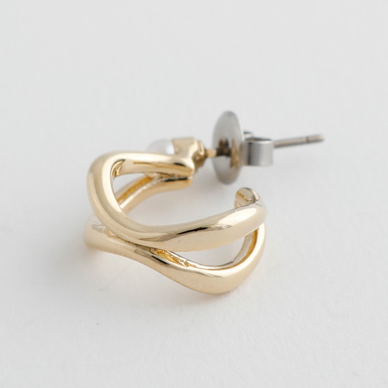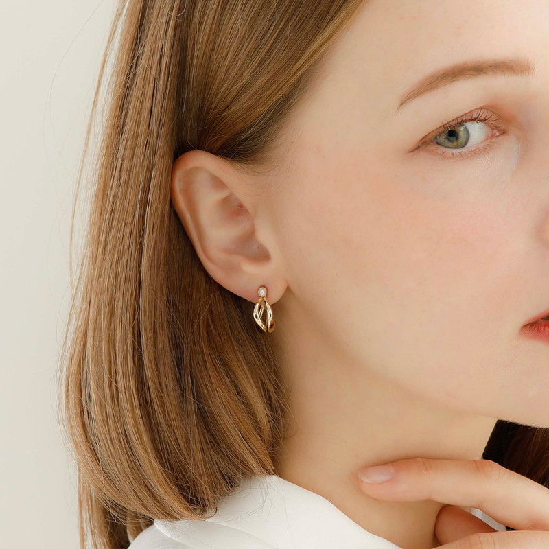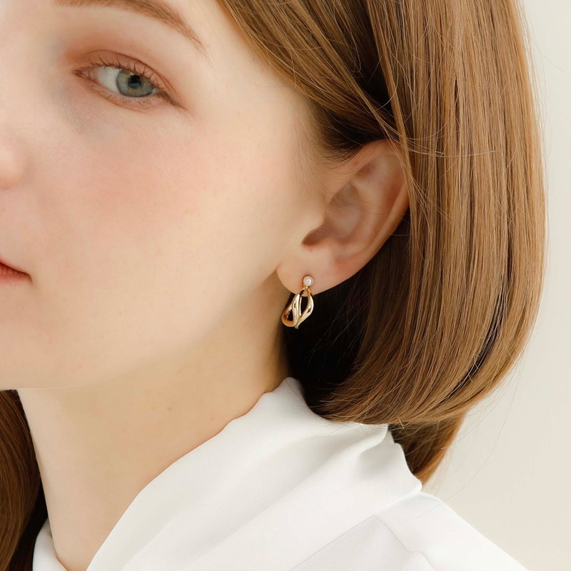 絶妙なウェーブのかかった変形フープと、可憐なパールのコンビネーション。