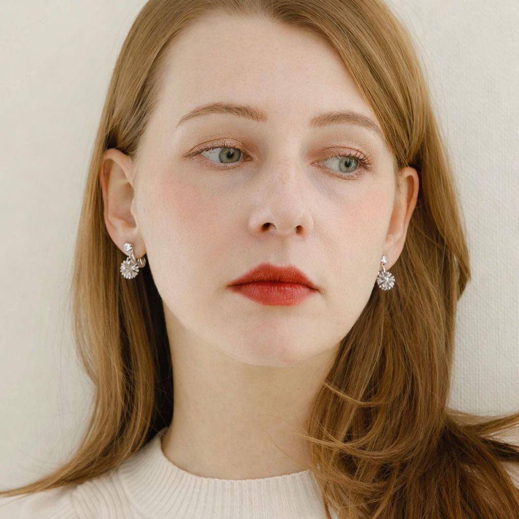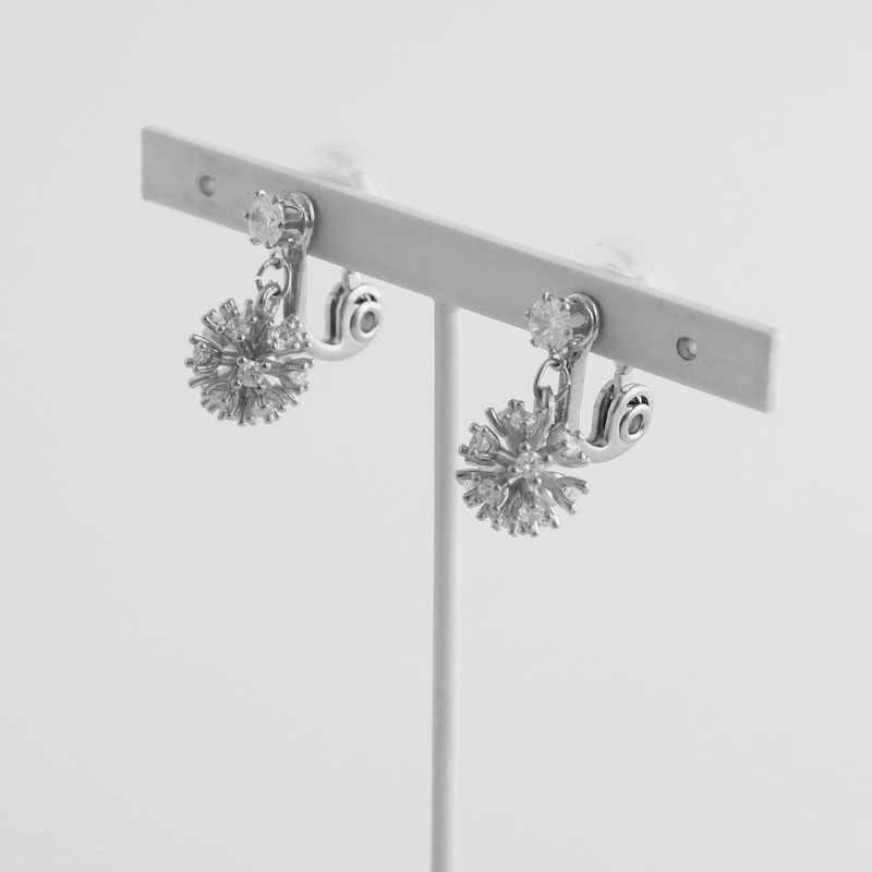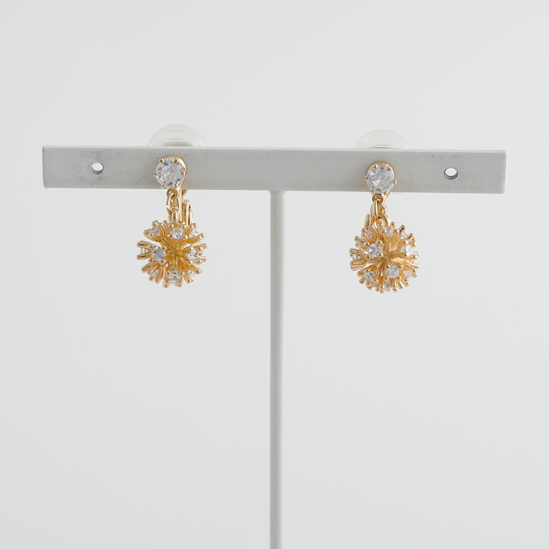 チクチクしたフォルムのフラワーの先にはガラスストーンがついており、動くたびに揺れて、煌めきます。