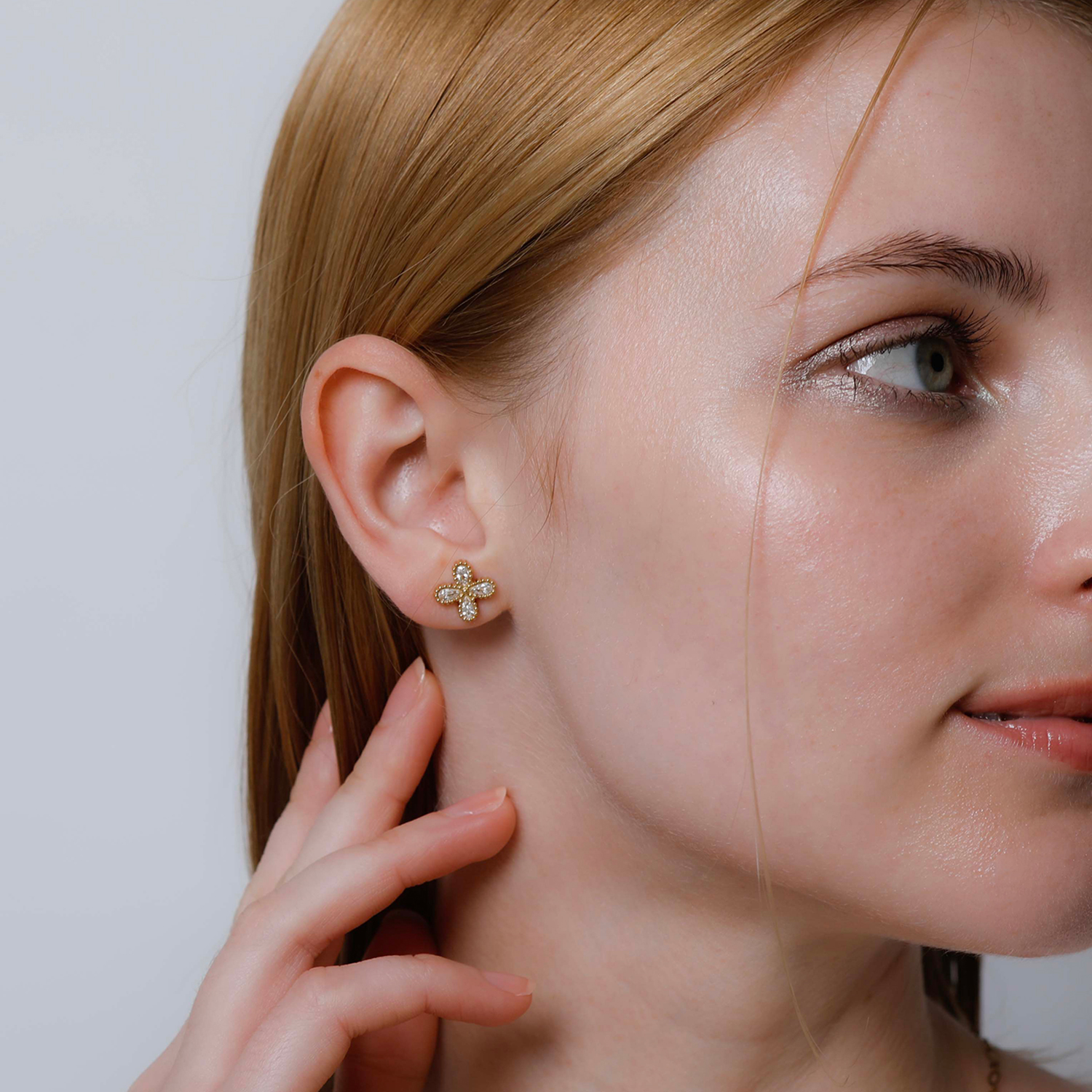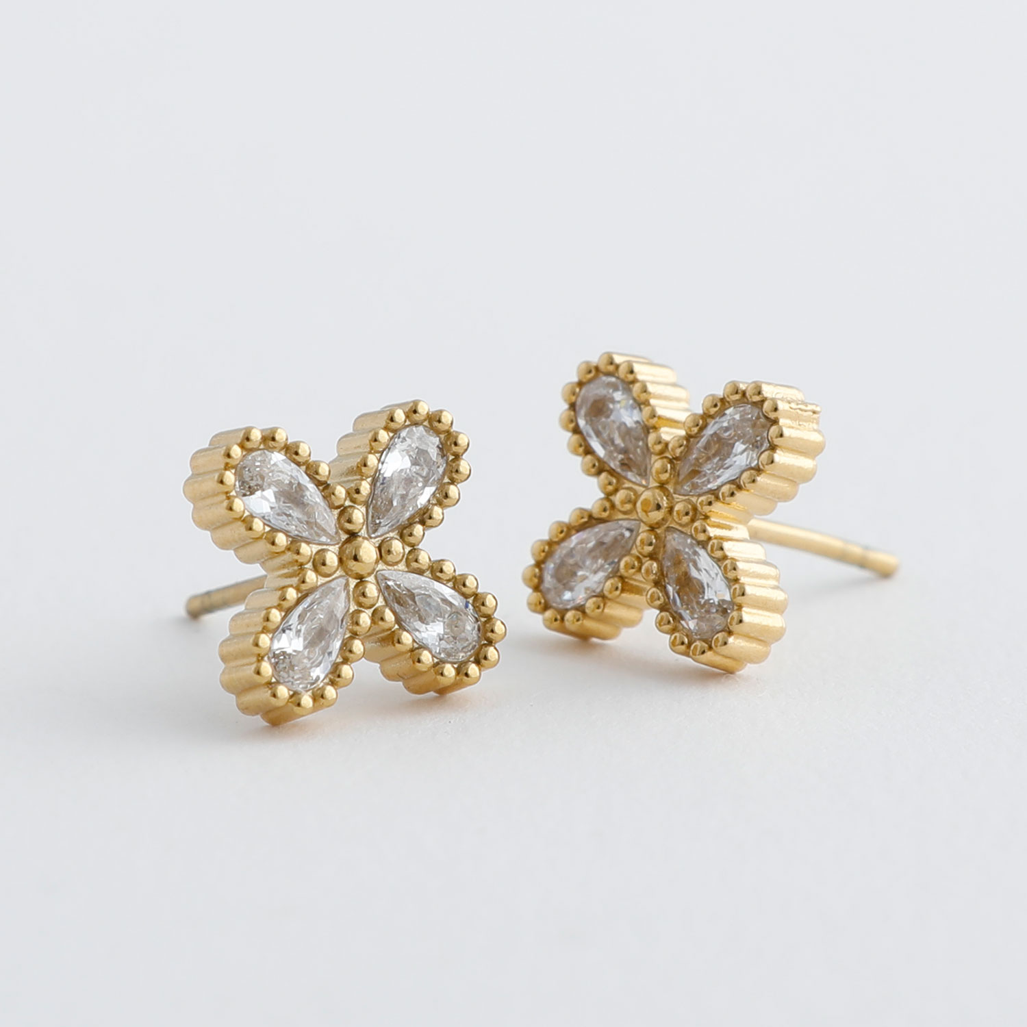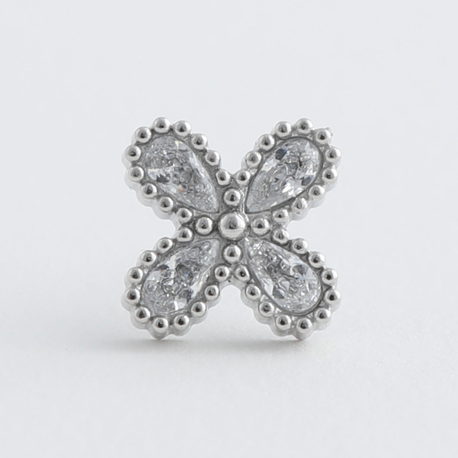 4枚の花びらに埋め尽くされたジルコニアは、小さくても輝きは本物。