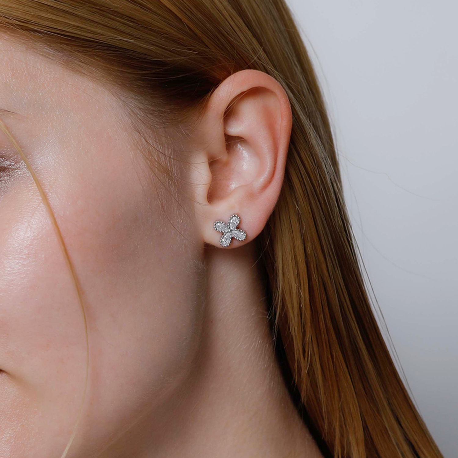 ギュッと詰め込まれた輝きが、耳元で輝くジルコニアクローバーピアス。