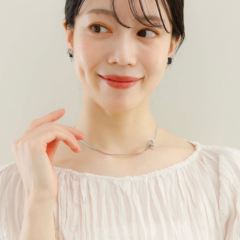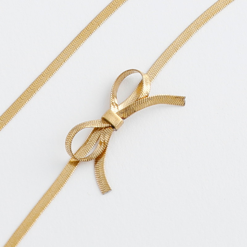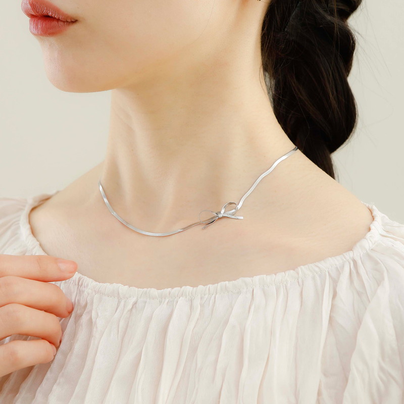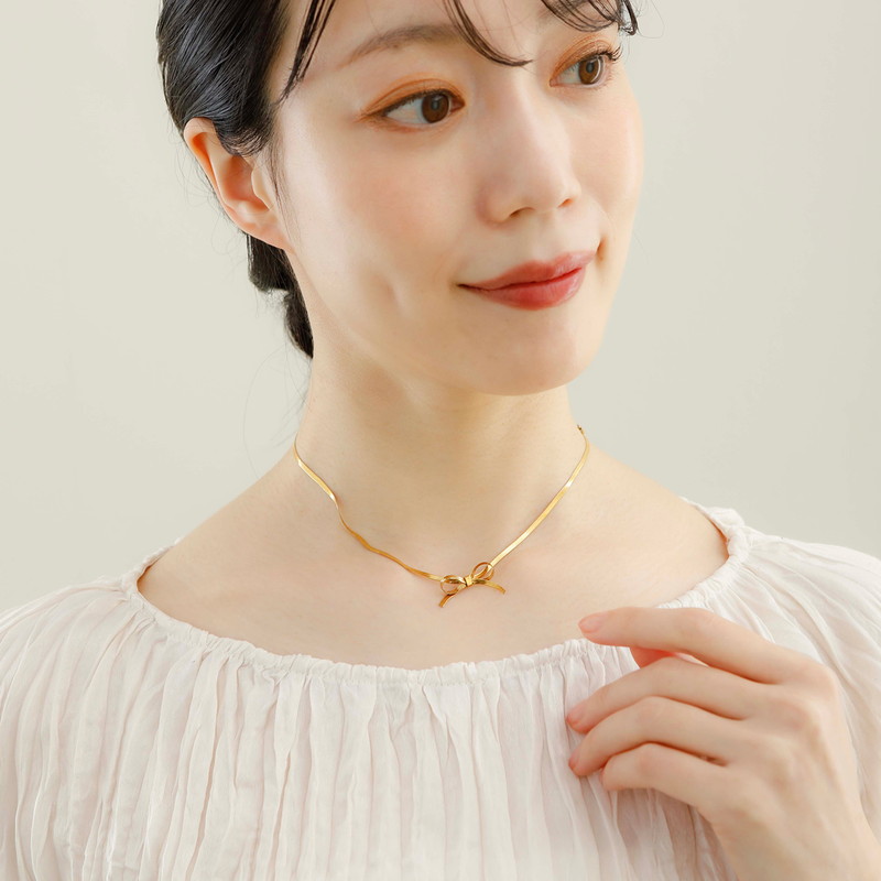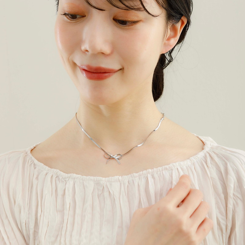 ステンレスリボンデザインショートネックレス [JCQ0215]