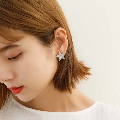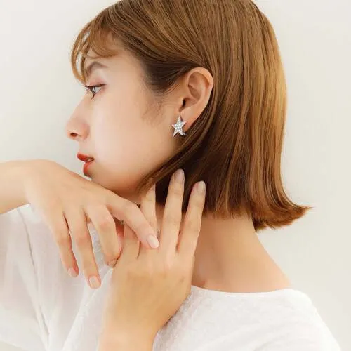 永遠の愛されモチーフである星=スターをモチーフにしたパヴェイヤリング。シーズンを問わずジュエリーライクに合わせられるのが魅力。キラキラと輝くクリアカラーに加え、グレーカラーは落ち着いた印象に見えます。
